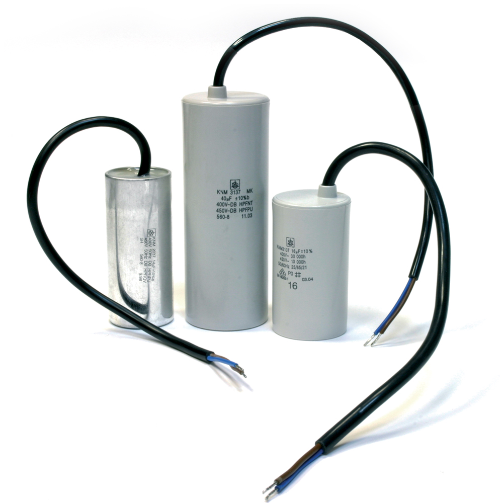 Startni i radni električni kondenzatori sa bipolarnim izlaznim kabelom i izolacijskim kućištem.